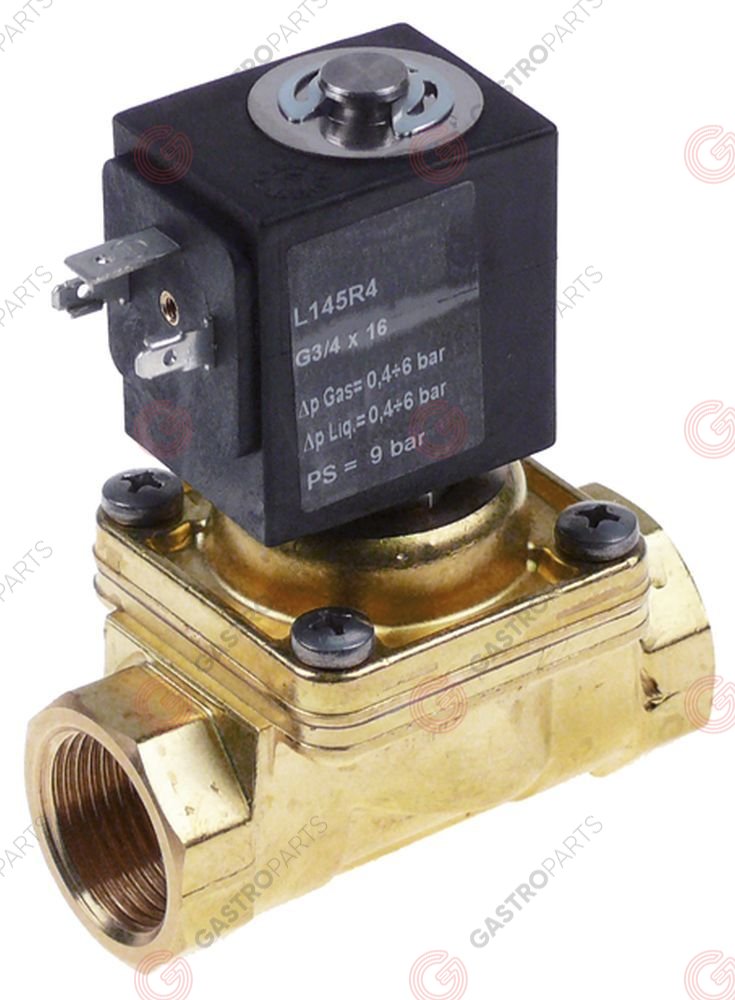 elettrovalvola a membrana ad azione indiretta normalmente chiusa - passaggio interno pieno - corpo in ottonestampato OT58 - sede rinforzata in acciaio inox - organi interni inottone e acciaio inox - membrana in PTFE (Teflon) - con otturatoredi tenuta in PTFE caricato - bobina in classe “H” (180°C)impregnata sotto vuoto con resine poliestere - tensione bobina incorrente alternata (24-110-220V 50Hz) o continua(12-24V) connessioni elettriche per connettori (DIN 46650) - grado diprotezione IP65.