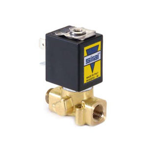 elettrovalvola a tre vie modulare ad azione diretta - corpo in ottone stampato OT58 - organi interni in ottone e acciaio inox - tensione bobina in corrente alternata (24-110-220V 50Hz) o continua(12-24V) - connessioni elettriche per connettori (DIN 46650) - grado di protezione IP65 - Ø interno 2 mm.