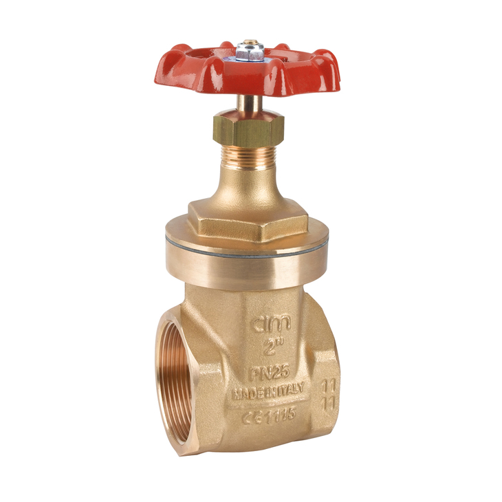 corpo e disco in ottone EN 12165 CW 617N (ø ¼”÷4”) in bronzo fuso UNI 7013-8° ISO 1338 (ø 5”-6”) - vitone in ottone EN 12165 CW 617N - asta, ferma asta, calotta e premitreccia ricavati da barra di ottone EN 12164 CW - guarnizione corpo in NA1030 Gr - guarnizione asta in AF 15/MAvolantino in lega di alluminio AL/SI 12 verniciato con resina epossidica rossa - dado di tipo autobloccante - attacchi filettati femmina ISO 228.